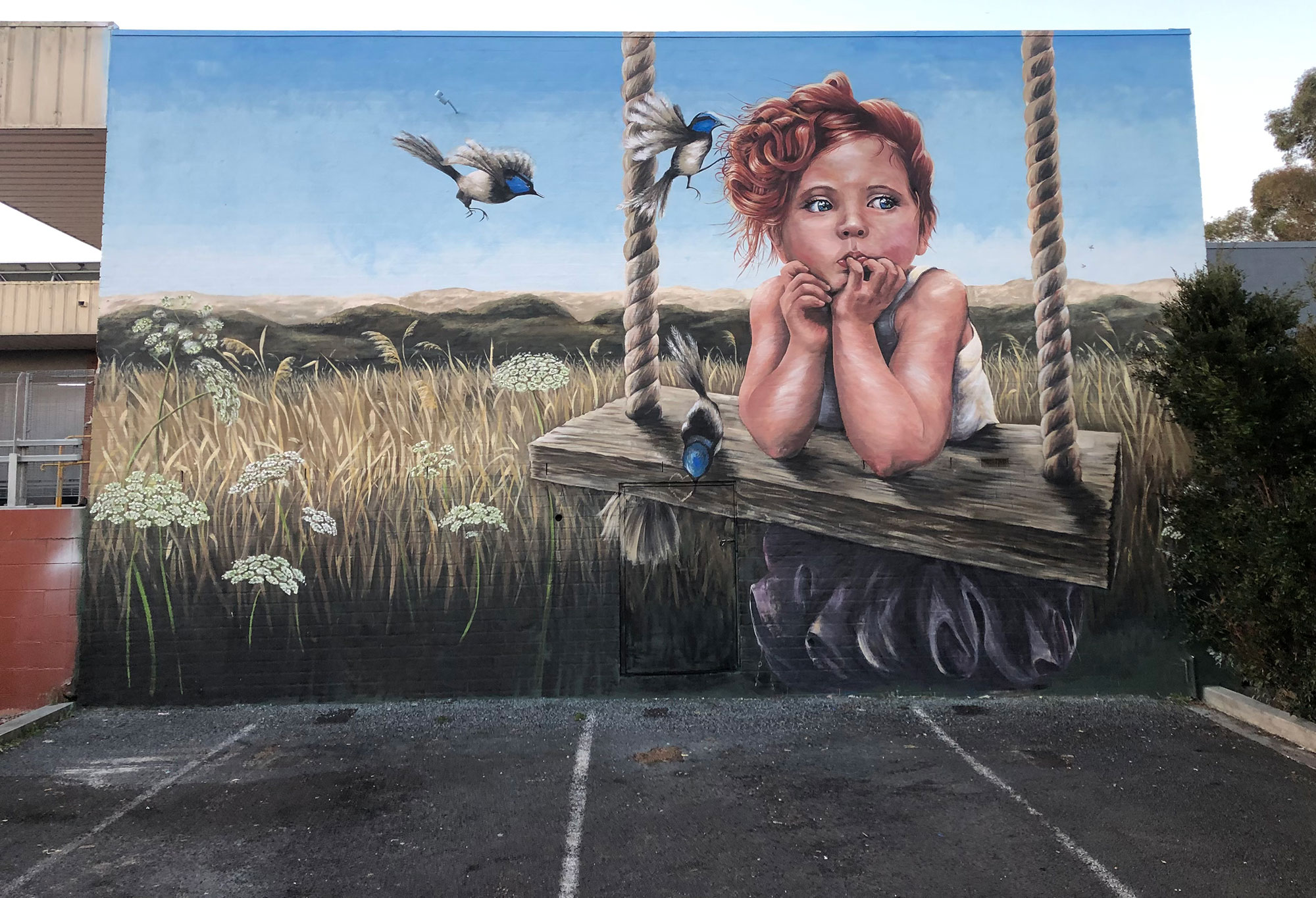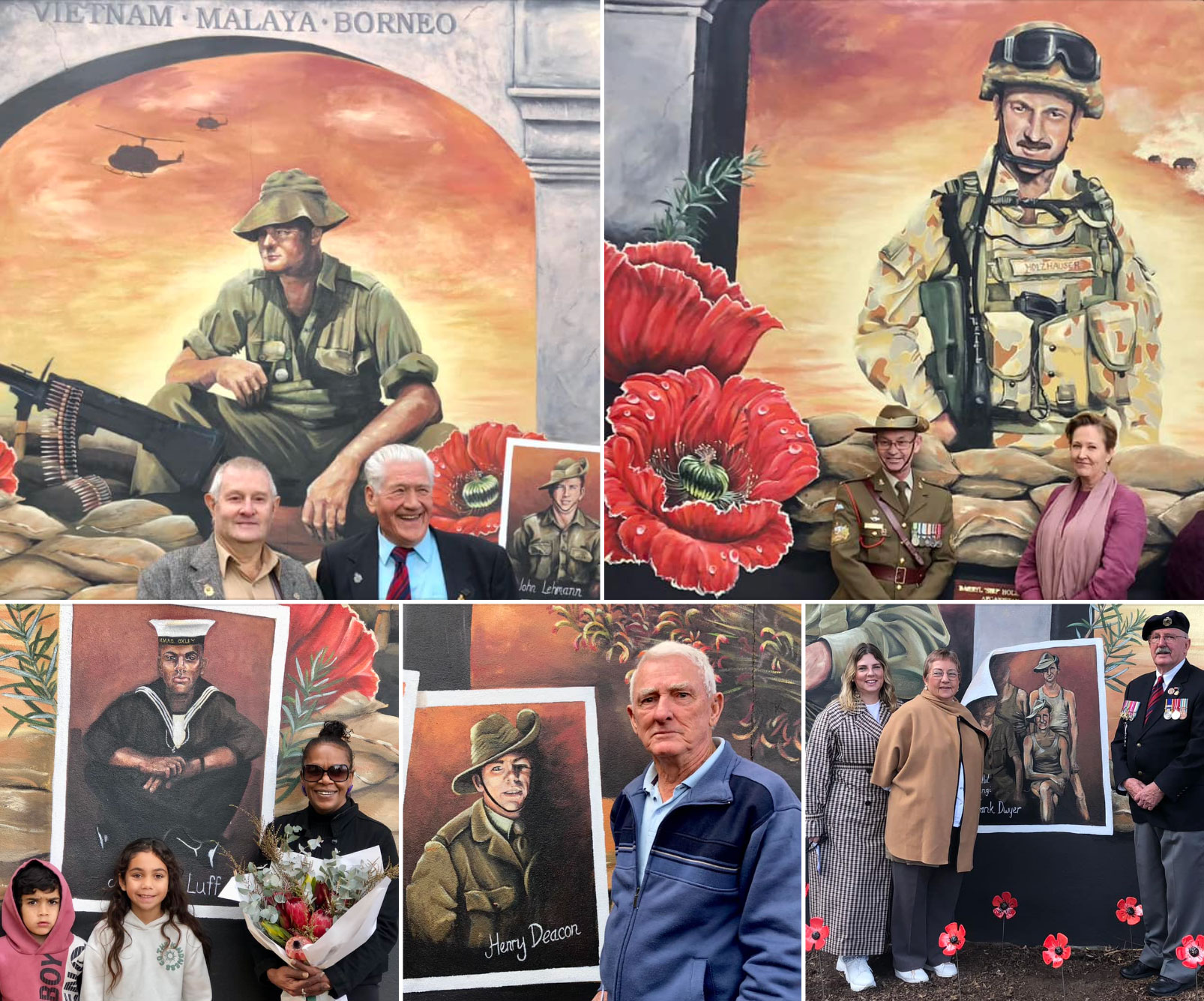 Terri's latest mural project is the Bega RSL Centennial Commemoration mural that was unveiled on Saturday May 25th, 2024 on the boundary wall of the Commemorative Park and the Reject Shop. With a span of 16m, Terri was in her element. Read the ABC South East NSW Facebook post below and watch the video from Bega District News to hear her talk about the process of this amazing mural!