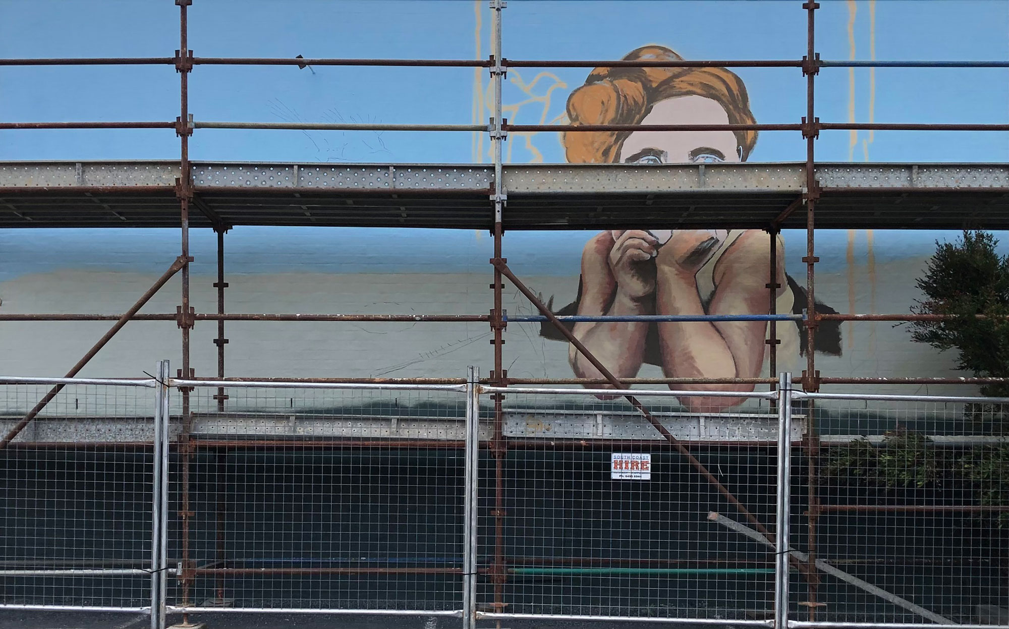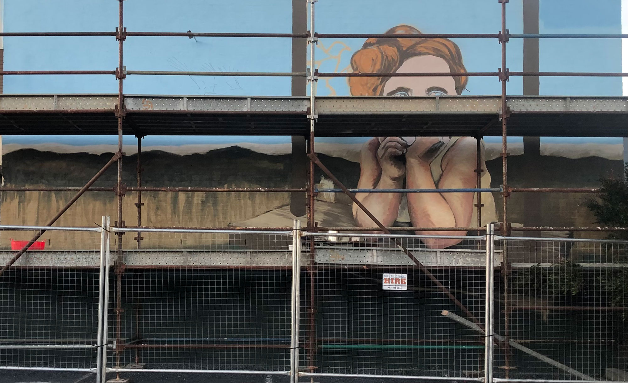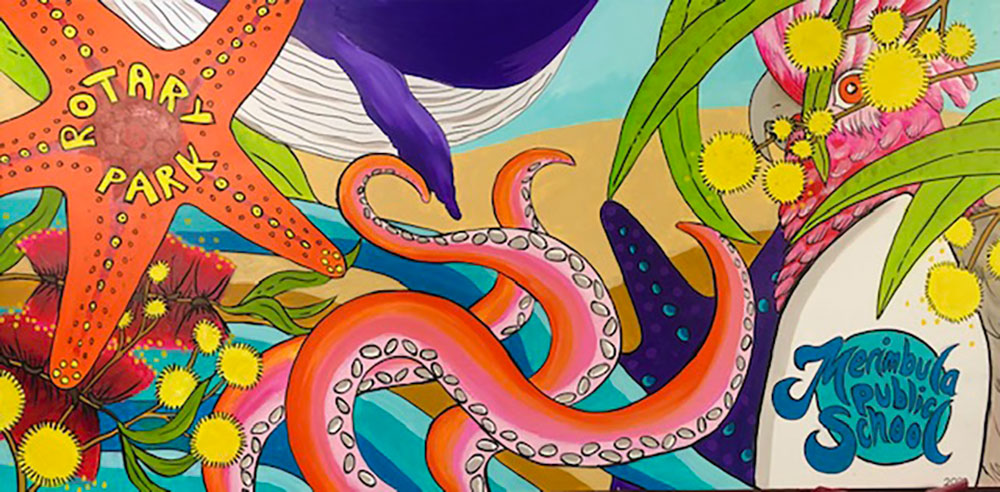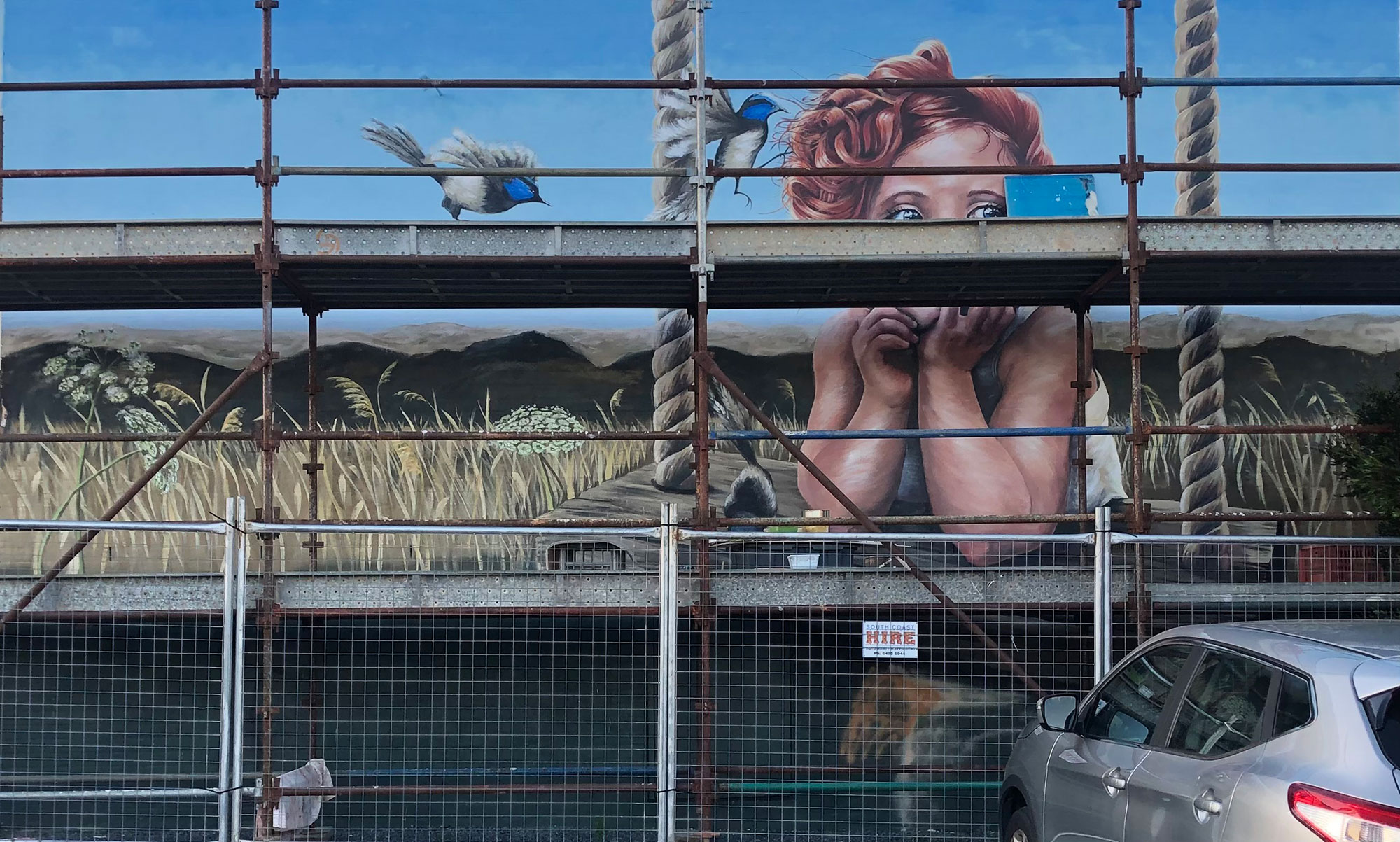 Terri single handedly transformed a 9.5 metre wide by 5.5m high brick wall into a work of art in Pambula in 2023. See progressive photos of her work below...